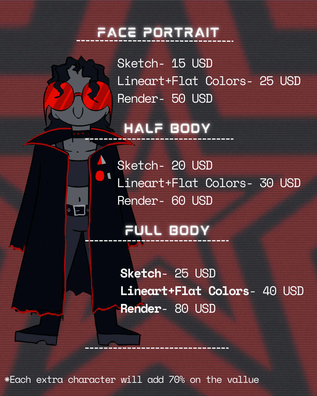 -These prices are for personal use, anything to commercial must be notified and the price negotiated.